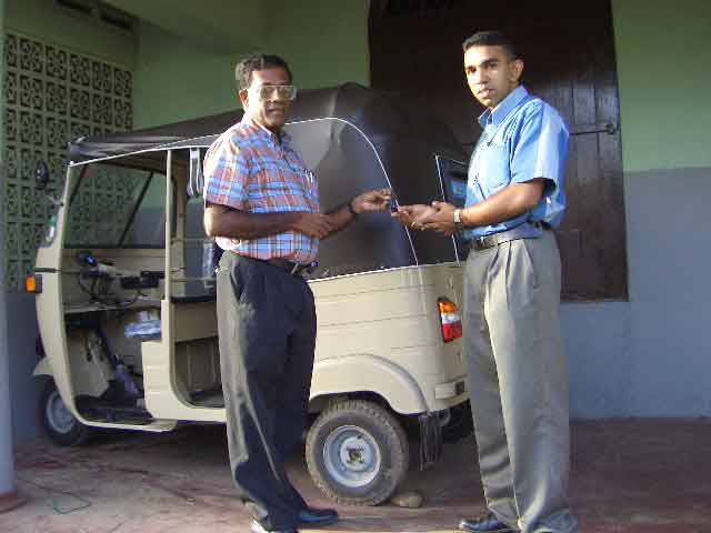 Handing over the three wheeler to Mr.Anura Dissanayake the Manager