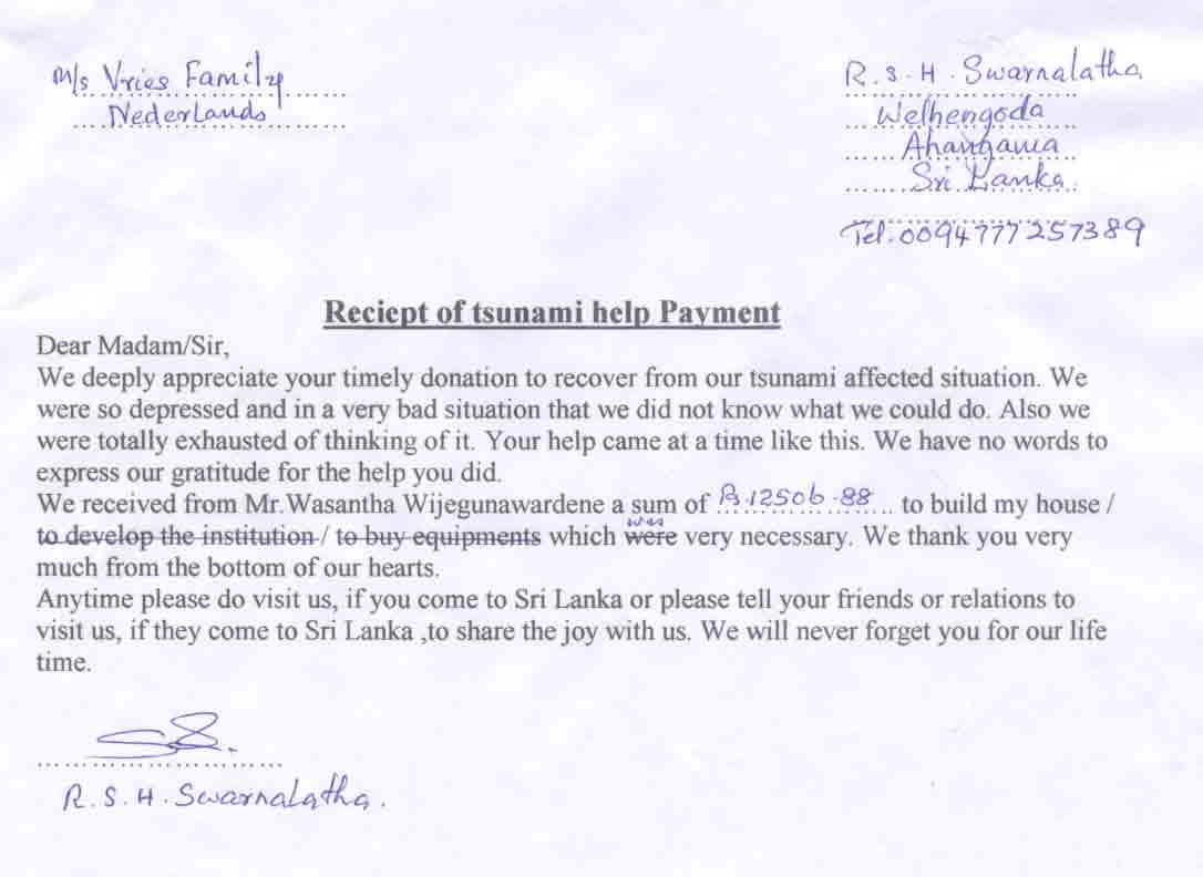 Swarnaltha's new house which Mrs.Inge from Nederlands built