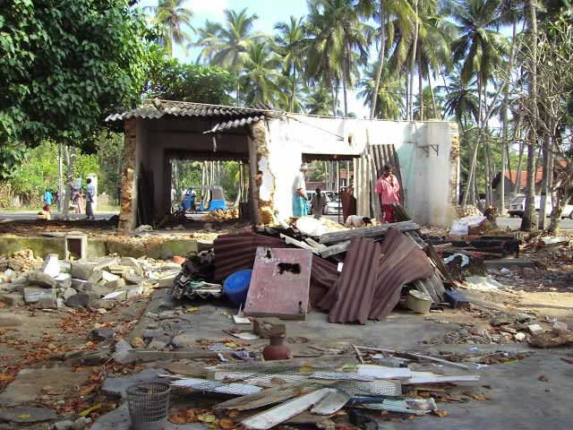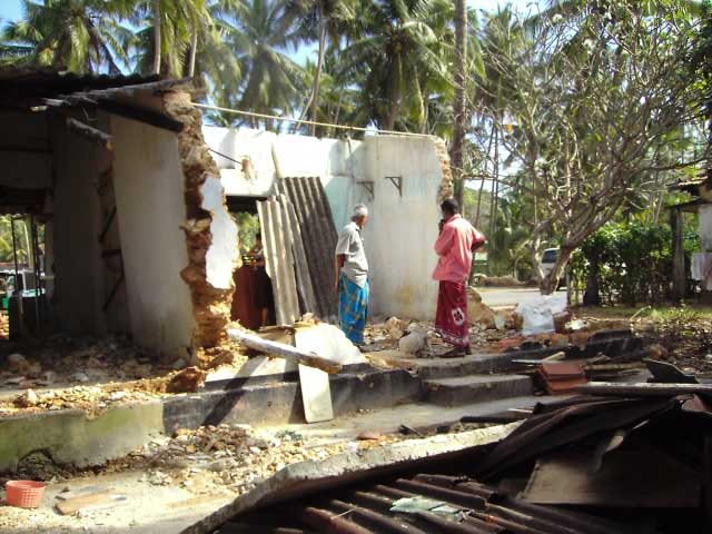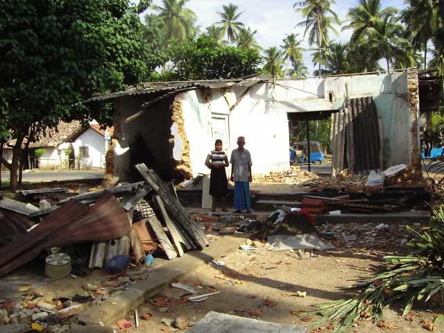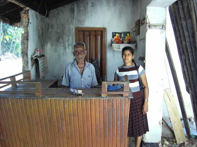 Swarna and her Father in front of Thir Damaged house Where her father had his tea butiquewhere