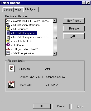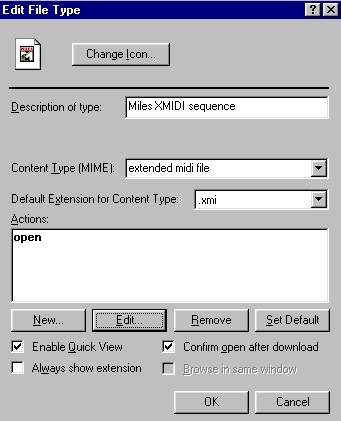 The content type box will be blank. Type "extended midi file" in the box. In the edit properties click enable Quick View and ok.