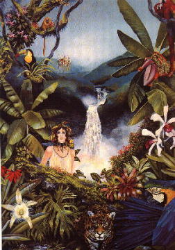 My painting was inspired by William Henry Hudson's heroine in Green Mansions, a turn-of-the-century novel which takes place in Guiana.