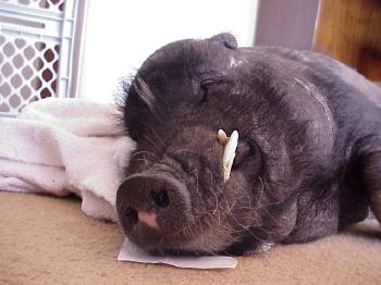 Now Lucky is a healed up fine swine,