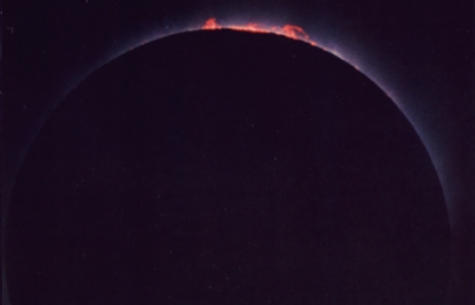 | Eclipse IV Red eruptions at the moon´s horizon.Photo made by R.Schulz on 3rd November 1994 in Brasilia. |