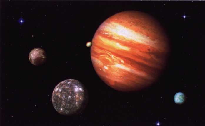 | Jupiter with moons Jupiter with major moons. Just a fake made of authentic photos. |