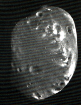| Deimos Deimos is the smaller one of the two irregularly formed moons of Mars. His longest axis is 15 km. The biggest of the craters covering the surface has a diameter of 2,2 km. |