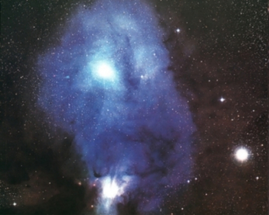 | Rho Ophiuchus I Rho Ophiuchus is a giantic dark cloud consisting of gas and dust. It reflects the light of close bright stars in blue, yellow and red. |