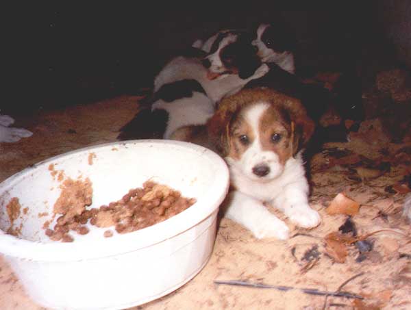 From Momma Dog's third litter we kept Stumpy "the stumpy-tailed dog" (front),
