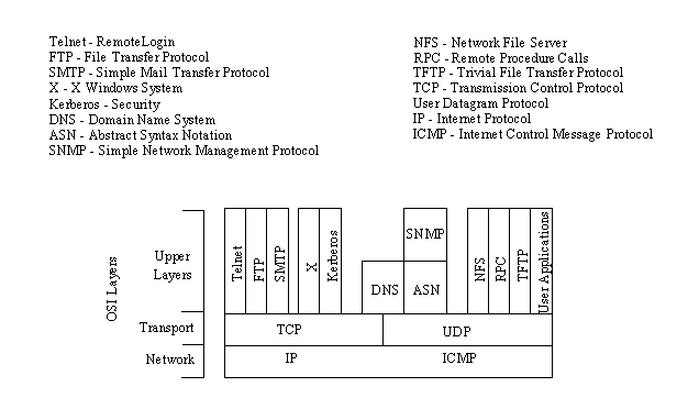 In the first chapter, you saw that the OSI Reference Model is composed of seven layers. TCP/IP was designed with layers as well, although they do not correspond one-to-one with the OSI-RM layers. You can overlay the TCP/IP programs on this model to give you a rough idea of where all the TCP/IP layers reside. I do that in a little more detail later in this chapter. Before that, I take a quick look at the TCP/IP protocols and how they relate to each other, and show a rough mapping to the OSI layers.