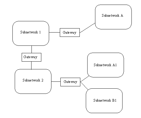 As mentioned earlier, the Internet is not a single network but a collection of networks that communicate with each other through gateways. For the purposes of this chapter, a gateway (sometimes called a router) is defined as a system that performs relay functions between networks, as shown in Figure 2.3. The different networks connected to each other through gateways are often called subnetworks, because they are a smaller part of the larger overall network. This does not imply that a subnetwork is small or dependent on the larger network. Subnetworks are complete networks, but they are connected through a gateway as a part of a larger internetwork, or in this case the Internet.
