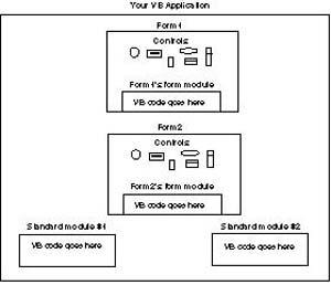 NOTE: Visual Basic also supports class modules, but this book does not discuss class modules in detail.