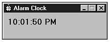 Figure 11.9 shows the Alarm sample application that comes with Visual Basic in the Samples\PGuide folder. The Timer's Interval property value is set to 500 and the time of day updates every half-second (the time is shown in full seconds; the half-second update helps correct timing problems that might occur every few half-seconds). Therefore, if you run the Alarm application, a Timer event will occur every one-half second.