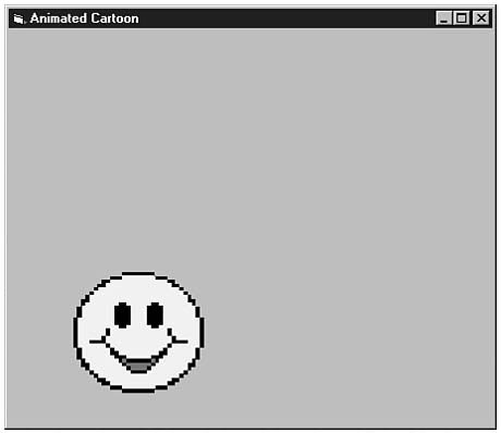 You can create animated applications using the Picture Box control by duplicating the same techniques used in the stop-animation techniques that movie-makers use for space and monster battles. This section describes the development of a simple animated Form window. Once you master these simple techniques, more extensive animation might take more time to develop, but the techniques don't change.
