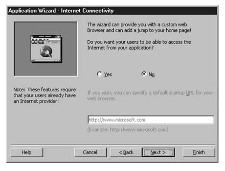 Obviously, something is wrong because the application does not look anything like the Internet. When you ran the wizard, you accepted a lot of dialog box default values. The wizard did not generate only an Internet application, but an application that happens to contain Internet access.