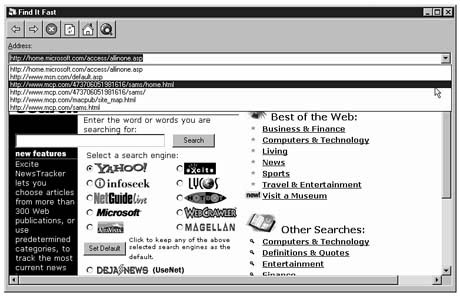 TIP: Click the browser's drop-down Address text box, shown in Figure 24.6, to go back to any specific Web page you've visited during your browsing session.