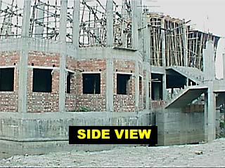 The brick structures on the left side of ground floor are discussion rooms. Behind them, there will be Pushpa Samadhi of His Divine Grace A. C. Bhaktivedanta Swami Prabhupada. the founder Acarya of International Society for Krishna Consciousness.