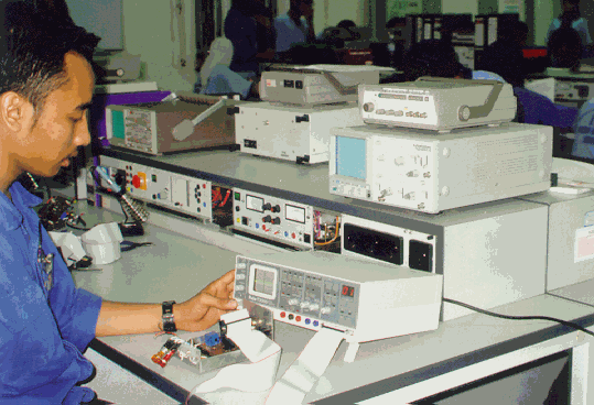 dan membaiki kerosakan alat dengan menggunakan jangka voltan digital, "oscilloscope",