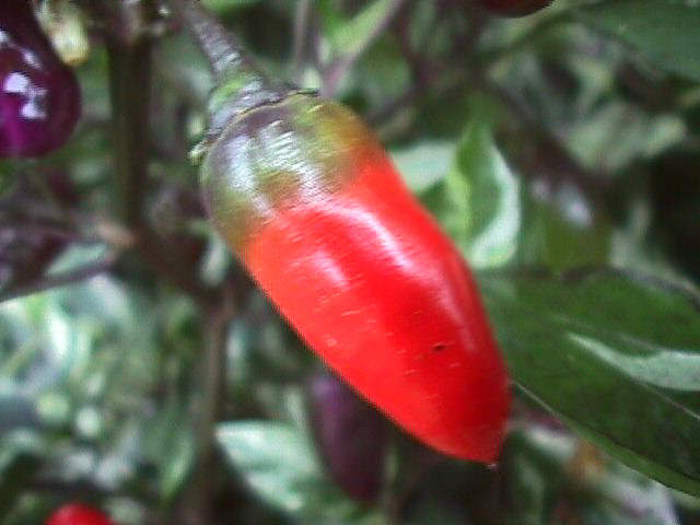 This pepper came from a packet of mixed seeds, the leaves are green/purple/white