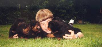 Wow, look at the puppies grow, they even play now. It's not always obvious who's playing with who.