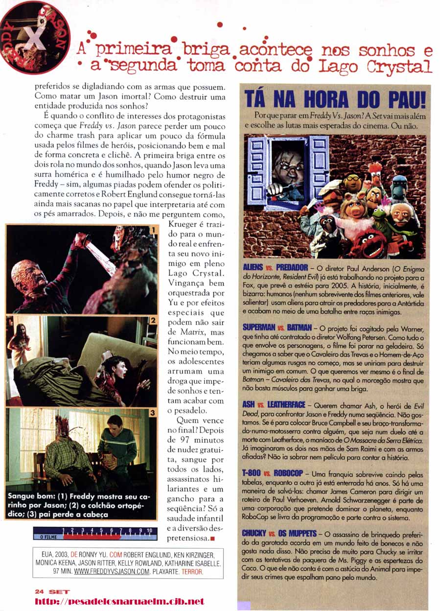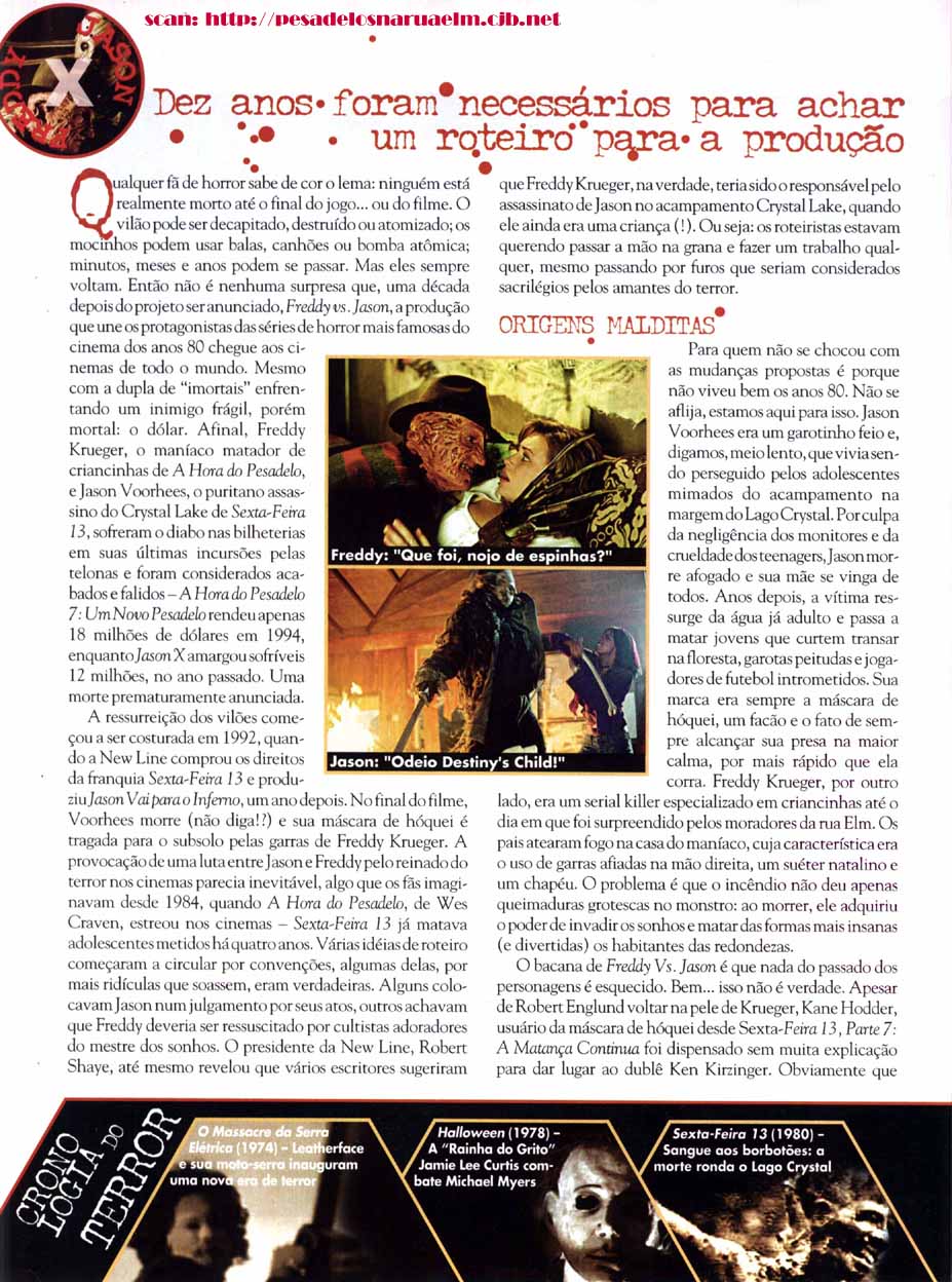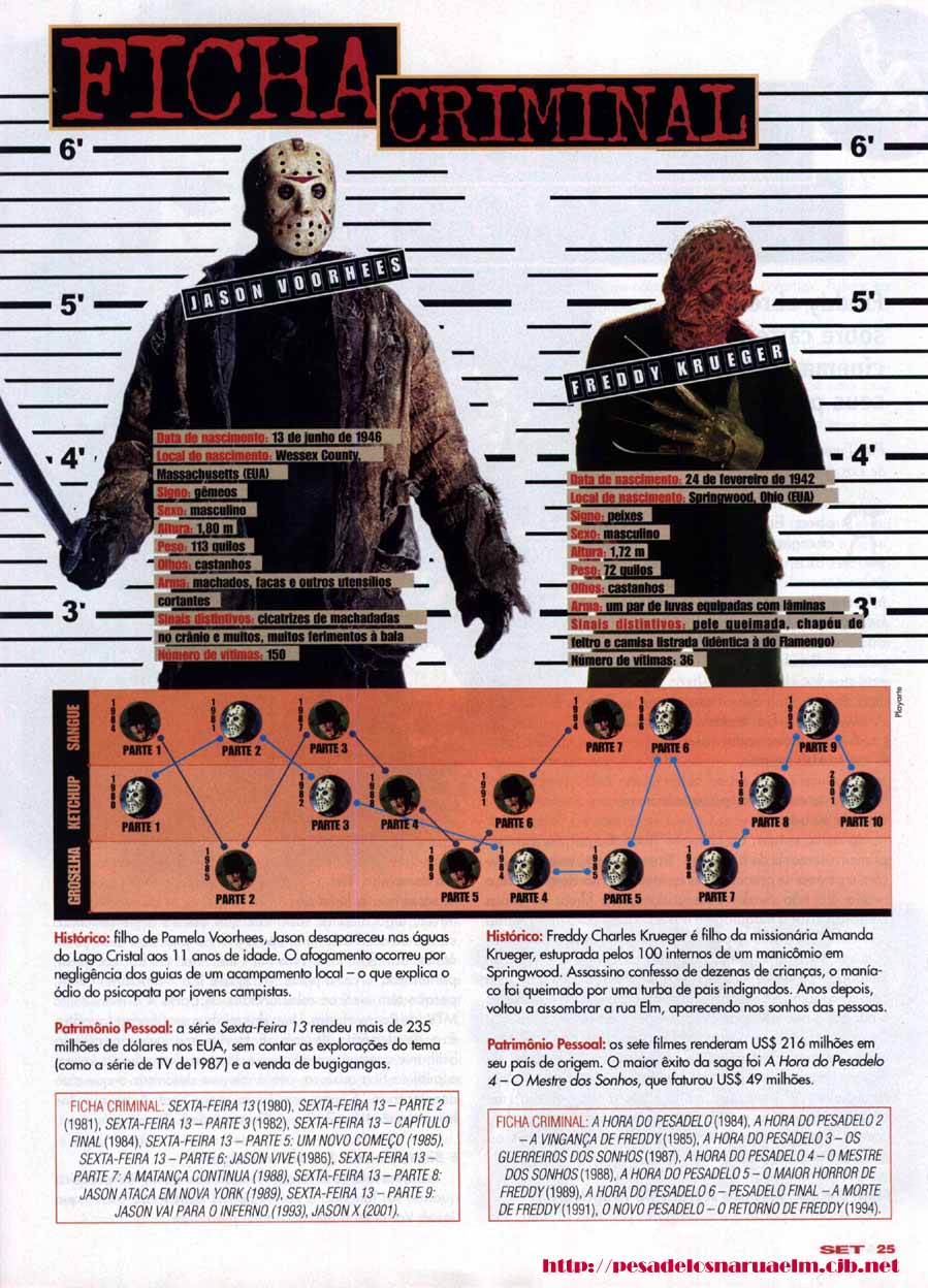 FILMES: A hora do pesadelo A hora do pesadelo 2 A hora do pesadelo 3 A hora do pesadelo 4 A hora do pesadelo 5 A hora do pesadelo 6 O novo pesadelo Freddy VS Jason