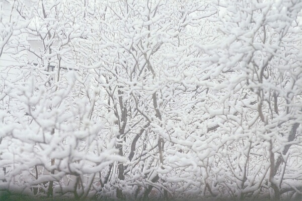 Lilac tree covered with snow in April