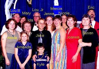We are a closeknit family of computer users. Here we are around our Internet webcam just 2 days after Christmas '99, vying for visibility. My husband Lou has been into computers for over 20 years, and now we're all into it. I couldn't wait to get my hands on this new 20 Megabyte Website, it's my Favorite Christmas present.