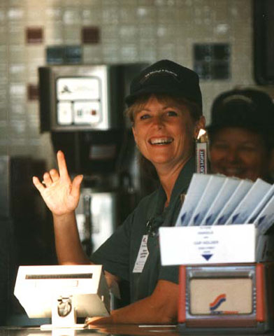 A friend waves