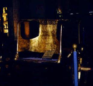 This is a reproduction of Tutankhamun's burial chariot. This is a rear view. |