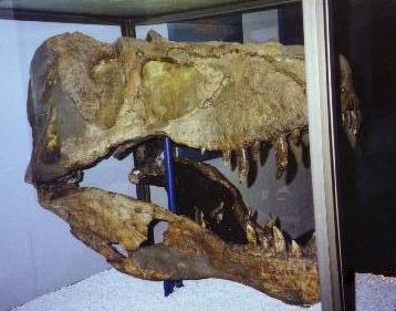 Pretty obvious. This is the skull of a Tyrannosaurus rex.