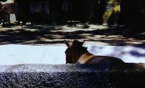 As we were watching the horses, this mare walked by in front of us. She's in a concrete channel separating the Przewalski enclosure from the road.