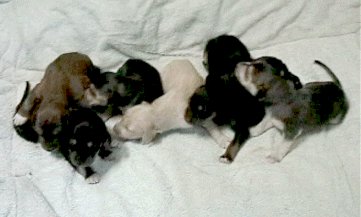 2 black males, 1 red male, 1 black female, 1 cream female, 2 grizzle females