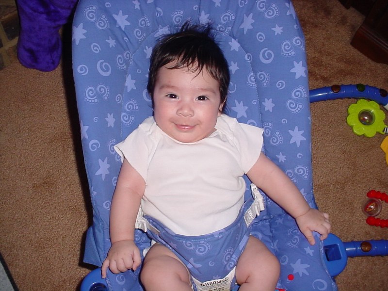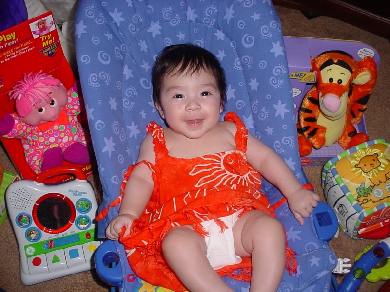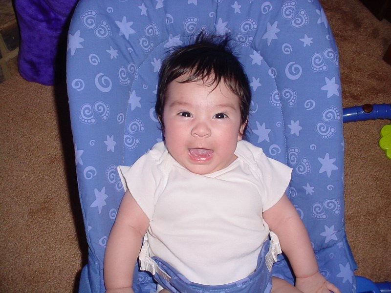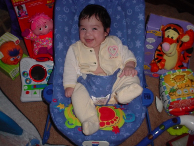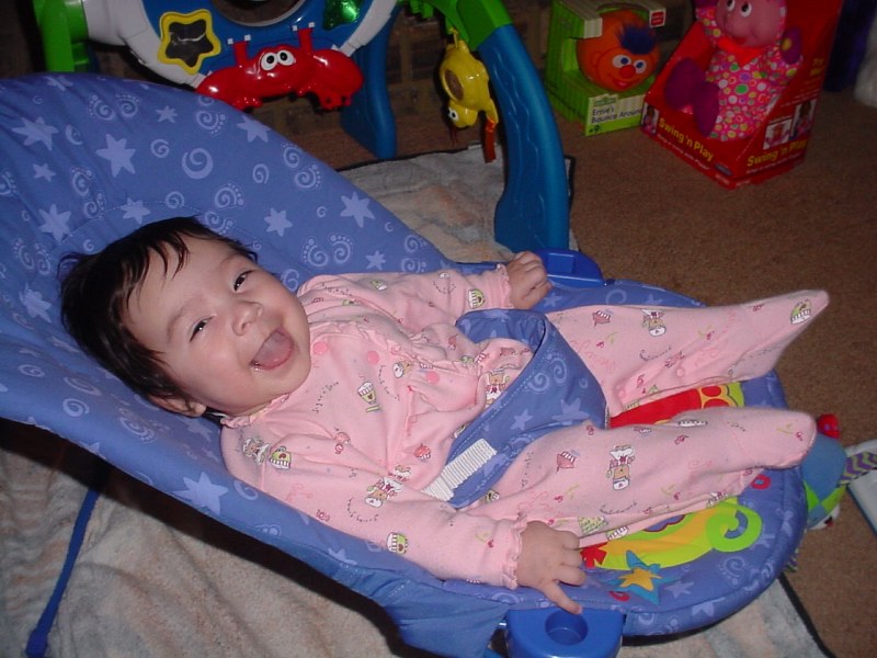 This is Elise in her new bounce chair, courtesy of our friend, Phoebe. As you can see, she really likes it.