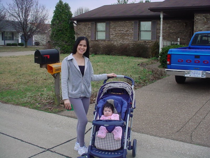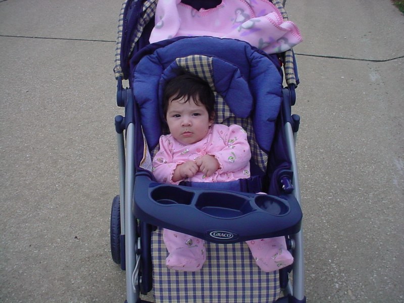 ![]() Elise with her Mommy, getting ready to go for her first walk in our subdivision.