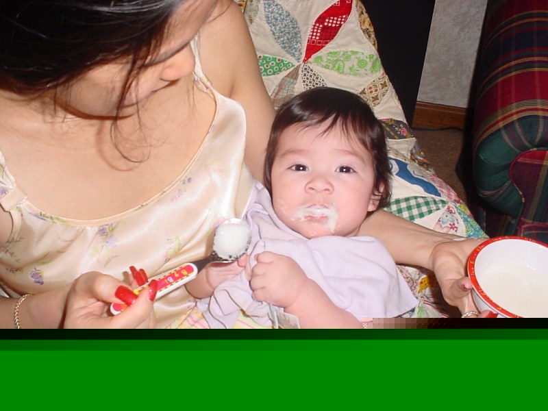 Today, Elise Adelaide turned exactly 5 months old, and so we decided to start her on rice cereal. At first she did not know what to think, but she quickly caught on.