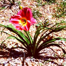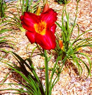 This is a deep, velvety red daylily, appropriately called Frosted Velvet.