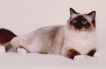 tail, contrasting with a lighter body coloring) of a birman distinguish