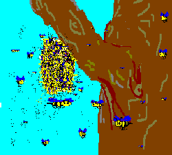 Then you land and start to form a new nest. The new nest is called a hive and it is built by the many other bees who joined you from the old hive. You are at the centre as they form around you to protect you and they begin to build the hive. |