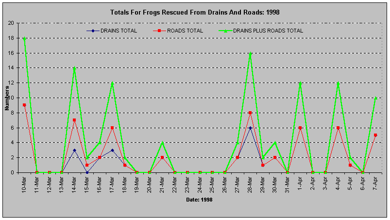 GRAPH OF FROG LIFT TOTALS ( DRAINS)