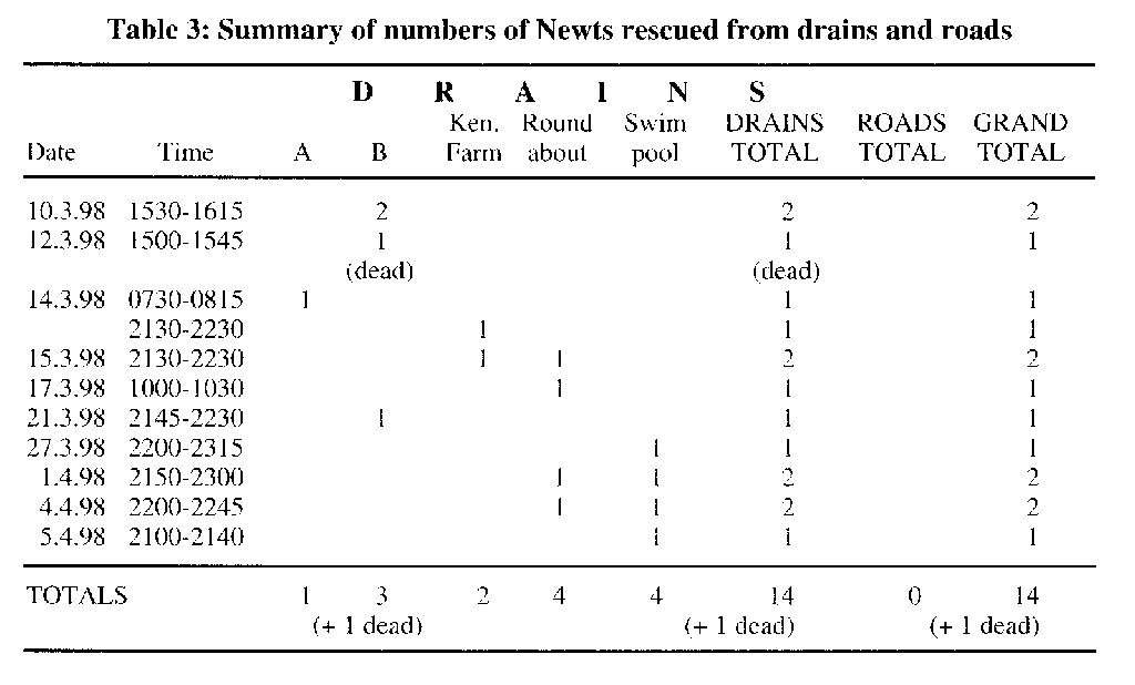 GRAPH OF NEWT LIFT TOTALS ( DRAINS)