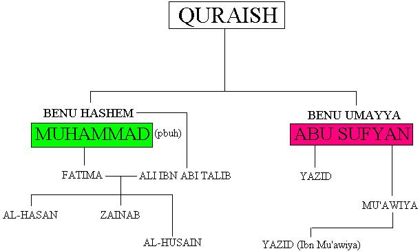 Mu'awiya was son of Abu Sufyan, a leader of Benu Umayya clan which was one of the clans of Quraish tribes. Mu'awiya grew up in a family known to be cunning, worldly, materialistic, and power hungry. Mu'awiya became Muslim only when Prophet Muhammad (pbuh) triumphed over Mecca. Those who became Muslim in this manner were called Tulaqaa', (a term scornfully used for the disbelievers who became Muslims to save their lives). Mu'awiya, his father Abu Sufyan, his mother Hind, and his brother Yazid son of Abu Sufyan were all Tulaqaa'; Mu'awiya never forgot this stigma for the rest of his life; he could never shake it from his mind, thus a feeling of malicious vengeance always existed in his heart. Mu'awiya's character and aspirations were entirely opposite to that of his sister, Umm Habiba, who was one of the wives of the Holy Prophet (pbuh). Unlike Mu'awiya, Umm Habiba was a sincere believer and a pious person.