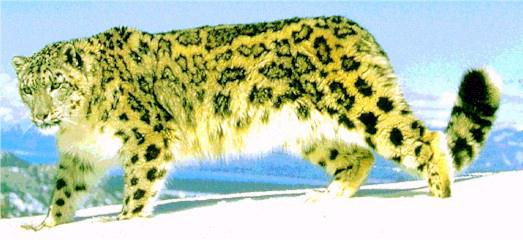THE SNOW LEOPARD IS FOUND IN THE MOUNTAINS OF CENTRAL ASIA. IT'S HUNTING RANGE IN THE SUMMER IS UP TO 19,700 ft. WHEN THE ANIMALS IT EATS MOVE TO FEED ON NEW GRASS. IT GROWS TO BE AT LEAST 7.6 ft INCLUDING THE TAIL.