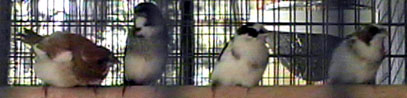 The birds above are society finches. I currently have 8 adults and two nestlings. When spring gets here, these numbers will increase quickly.