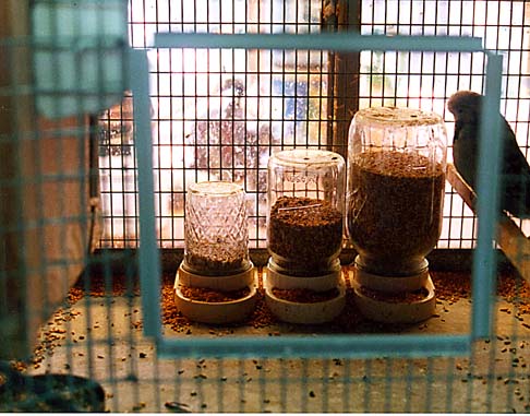 Each cage has cuttlebone, mineral block, three spools of salts, a container of oyster shell, three food types, and access to an automatic watering system. The watering system has been a great time saver. The three containers of seed include: a 45% parakeet mix, Perchmate Parakeet from KAYTEE, and recleaned canary. As a supplement I also give my birds fruits and vegetables, especially sweet potato for the vitamin A. |