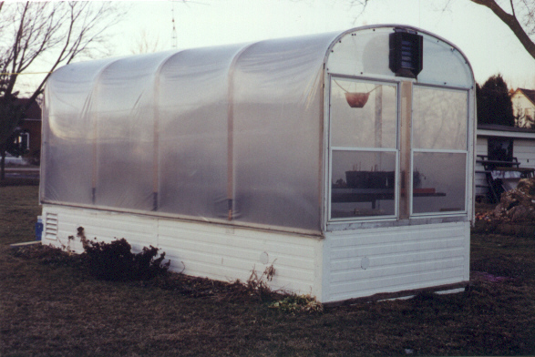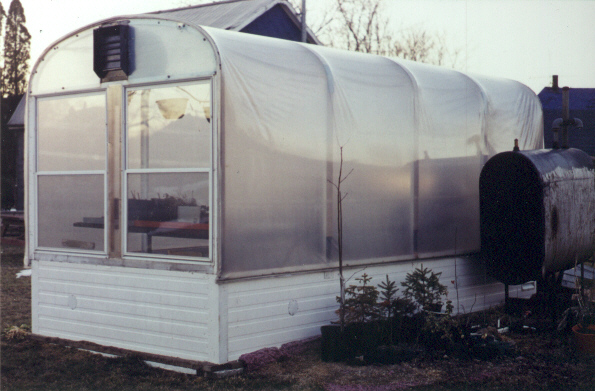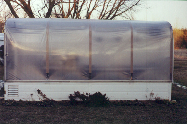 It has double (inflated) 10 mil greenhouse plastic that a friend (Rory) got me from the commercial greenhouses where he works. (storm damaged)