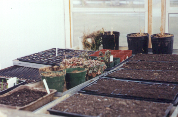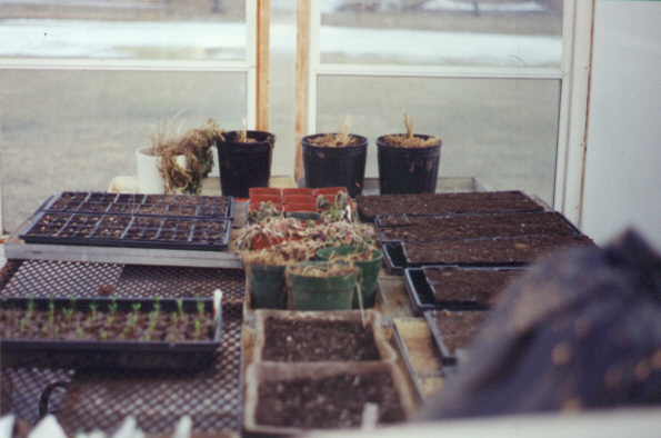 The table will hold 25 flats in 1' x 2' pans and a 4' x 2' hotbed area.