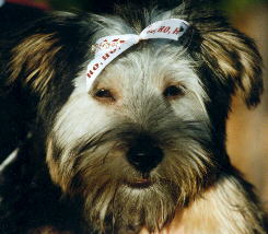 For number two : This was taken the day we got him groomed 1 day before his first Christmas. aint he cute??. I still have the little bow from his hair to this day. Last Christmas (1998) I put the bow in his hair :-P.