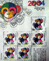 2004 is the year of Monkey in Chinese calendar. Many countries has issued stamps for this celebration. Recently, China published its new "Monkey" stamps commemorate the year of Monkey. It is hope that this year will be as energetic as the monkey. |