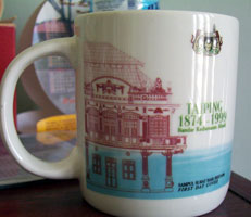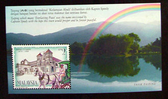 On 1 September 1999, a set of stamps together with a RM2 miniature sheet were issued featuring Taiping. I remember going to Taiping post office on that day to get the Taiping stamp-mark on my first day cover. Here is my two precious cups, produced by the Majlis Perbandaran Taiping (MPT).