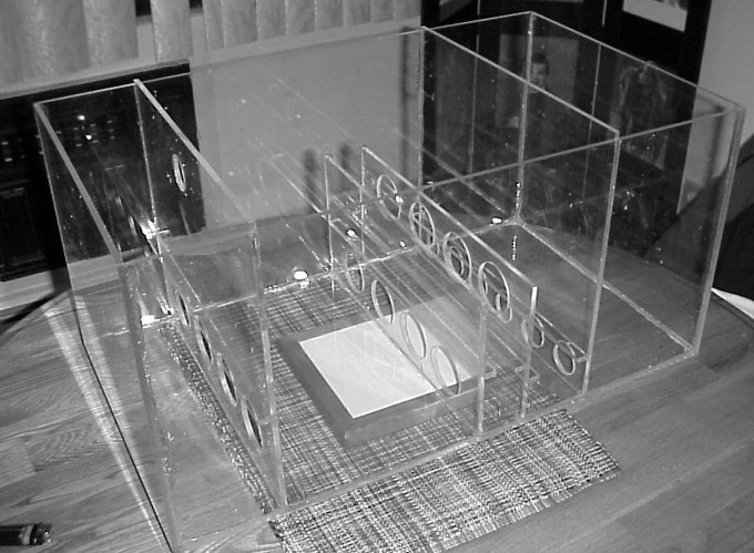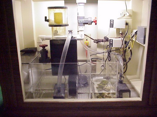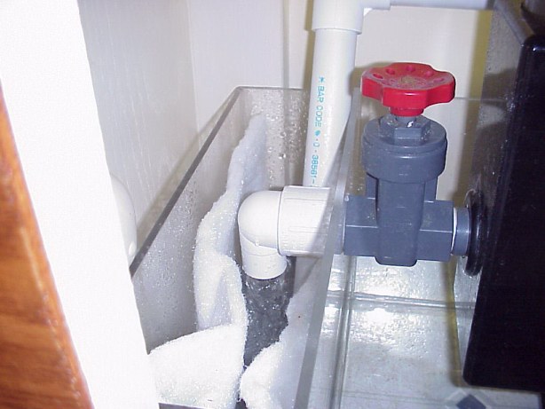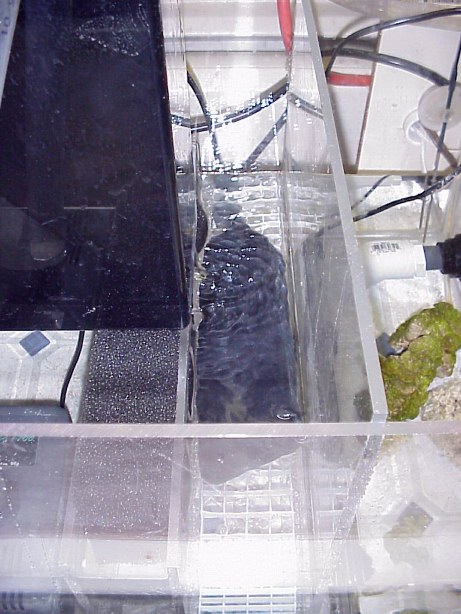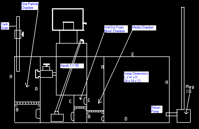 I used 1/4" acrylic. Holes were made with a 2" hole saw for the first and second chamber and a 1" hole saw for the last chamber. I adhered pieces together with Weld-On 3 and then sealed the joints with Plumbers Goop for extra leak protection. Once everything was dry, I routed the sides, ends and bottom with a 1/8" corner round bit with a mounted bearing, then I polished the corners with a polishing wheel and some polishing compound to give it that finished factory look. I didn't router the top because I plan on putting a top on the sump to keep salt creep down to a minimum in the cabinet area. Pieces were purchased from Laird Plastics in Rochester, NY. Materials and labor for project cost me $58. I already had the adhesives, so if your trying to figure a price for yourself add about $10. Add another $18 for the router bit and rent the router or borrow one if you don't already own . By the way, the no bubble flow in this sump is superb. I'm very happy with the results of my project !!!!!!!