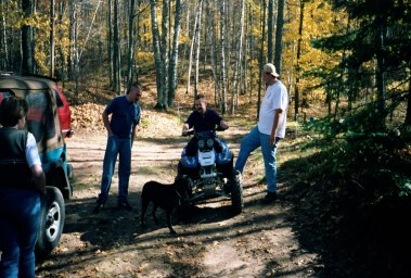 When I travel up North, to take a walk or four wheel into the woods.