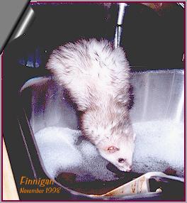 Finnigan spends a lot of his time following me aroundand begging to be picked up and snuggled. He seems to enjoy people more than the other ferrets.